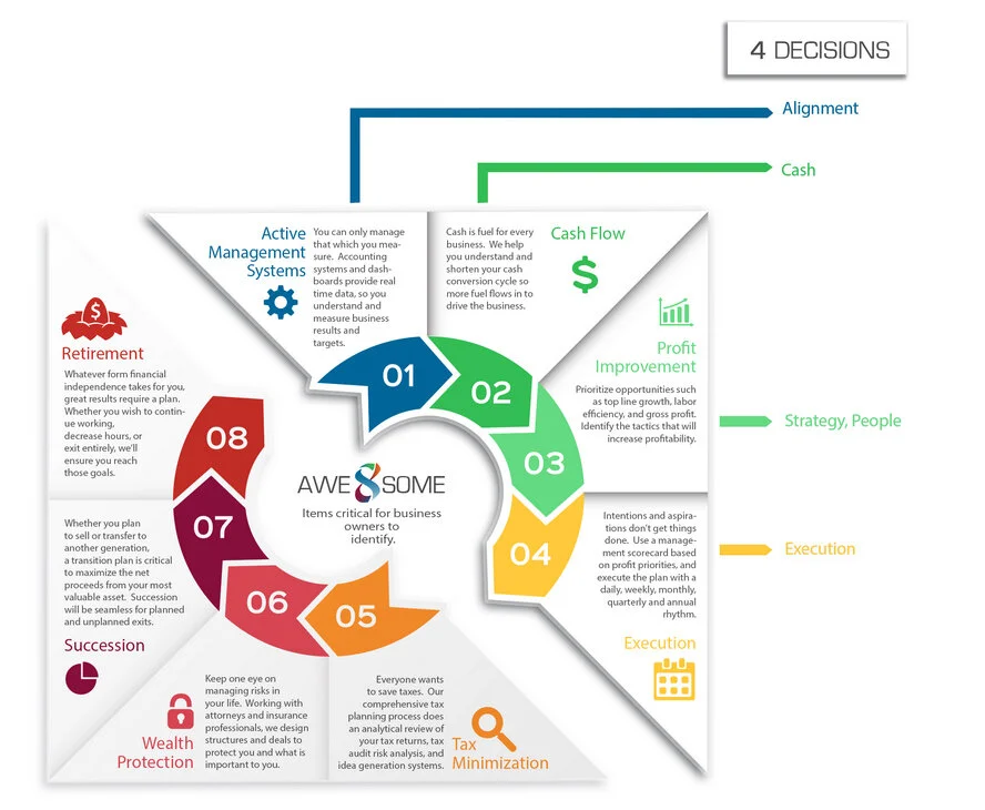 Our Awesome 8 approach to growth takes the mystery out of running your company and allows you to focus on the eight elements of the business that will guarantee success for your scalable business.
